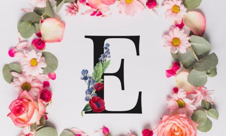 صور حرف e مزخرف للاطفال والكبار بالورد الأحمر والذهب بجودة عالية